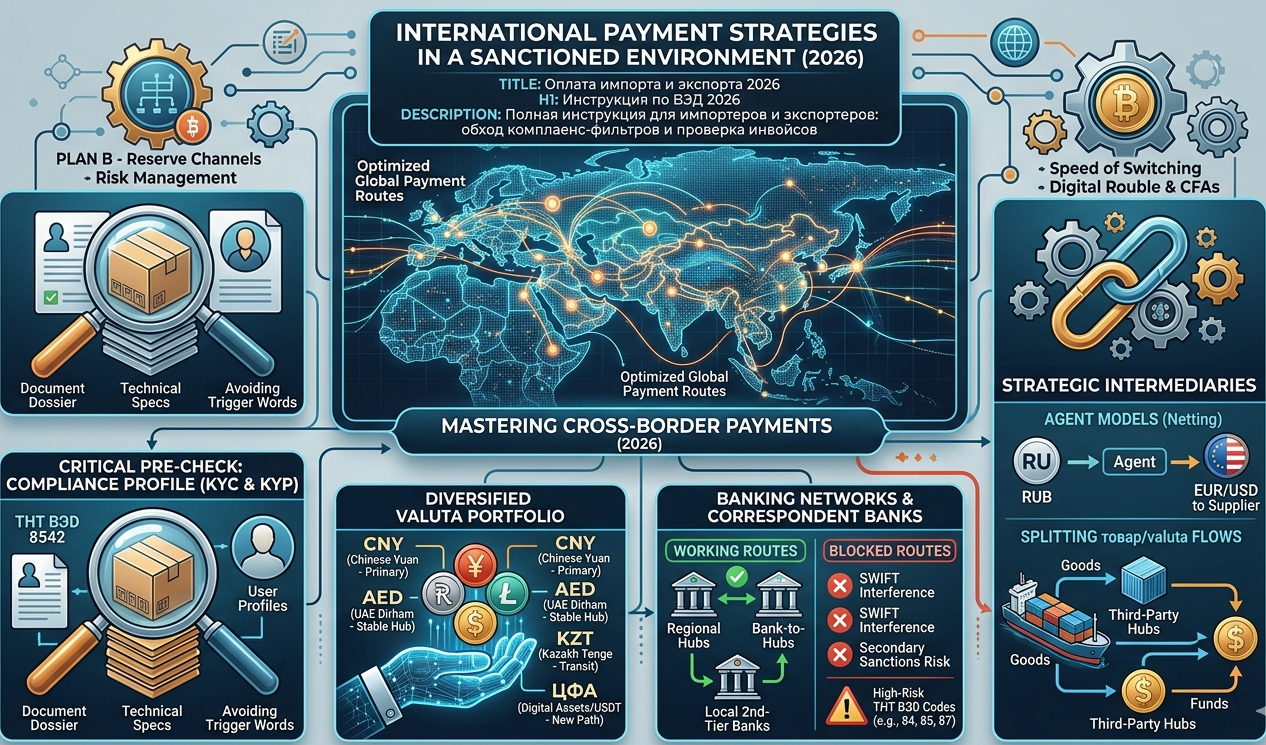 Итоговый совет для инструкции: Всегда держите в запасе «План Б» (второй банк в другой юрисдикции). В 2026 году стабильность ВЭД — это не наличие одного надежного партнера, а скорость переключения между пятью разными каналами оплаты, когда один из них внезапно «закрывается» из-за обновления политики комплаенса.