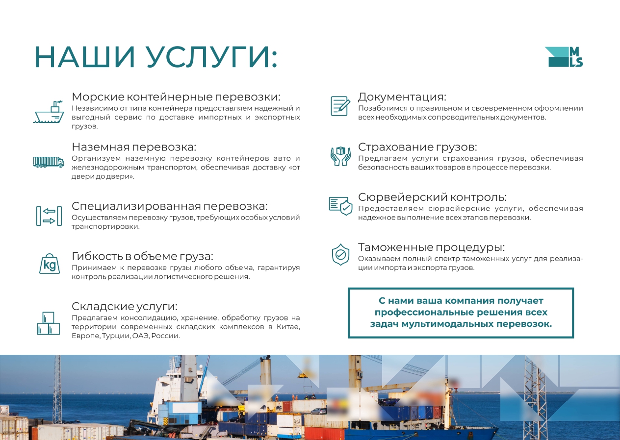 Товары и услуги: экспортные/импортные морские/авто/жд/авиаперевозки грузов через порты Новороссийска, Санкт-Петербурга, Владивостока