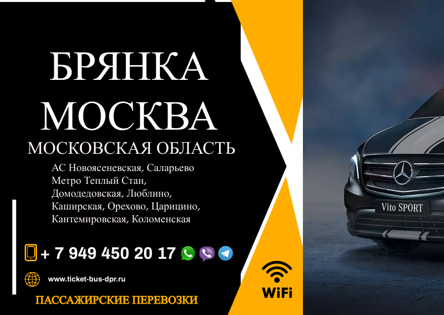 Перевозки пассажирские Брянка МОСКВА билеты автобус расписаниеПеревозки пассажирские Брянка МОСКВА билеты автобус БИЛЕТЫ НА АВТОБУС Брянка МОСКВАОсуществляем пассажирские перевозки. Ежедневные регулярные рейсы. У нас Вы можете заказать билеты на микроавтобус, автобус, легковое авто, аренда авто. Осуществляем переезды Брянка МОСКВА. Перевозка больных. Грузоперевозки. Без пересадок и пеших переходов поездки ежедневно Брянка МОСКВА. Узнать расписание и цену на рейс можно по телефонам и получить консультацию+7 949 450 20 17 Viber, WhatsApp, Telegram+79494502017 фениксЗадать вопрос, заказать место через соц. сети Время отправления: (ежедневно)Транспорт микроавтобусы и автобусы: 8 мест 25 мест, 50 мест, 89 местКаждое транспортное средство тщательно проверено и находится в безупречном техническом состоянии. В салоне есть климат-контроль, все сиденья имеют откидную спинку. Водители нашей компании – профессионалы с большим стажем работы, знающие дорогу и хорошо ориентирующиеся на местности.