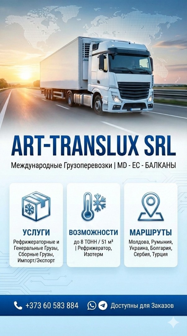 ART-TRANSLUX SRL — автотранспортная компания, специализирующаяся на внутренних и международных грузоперевозках.