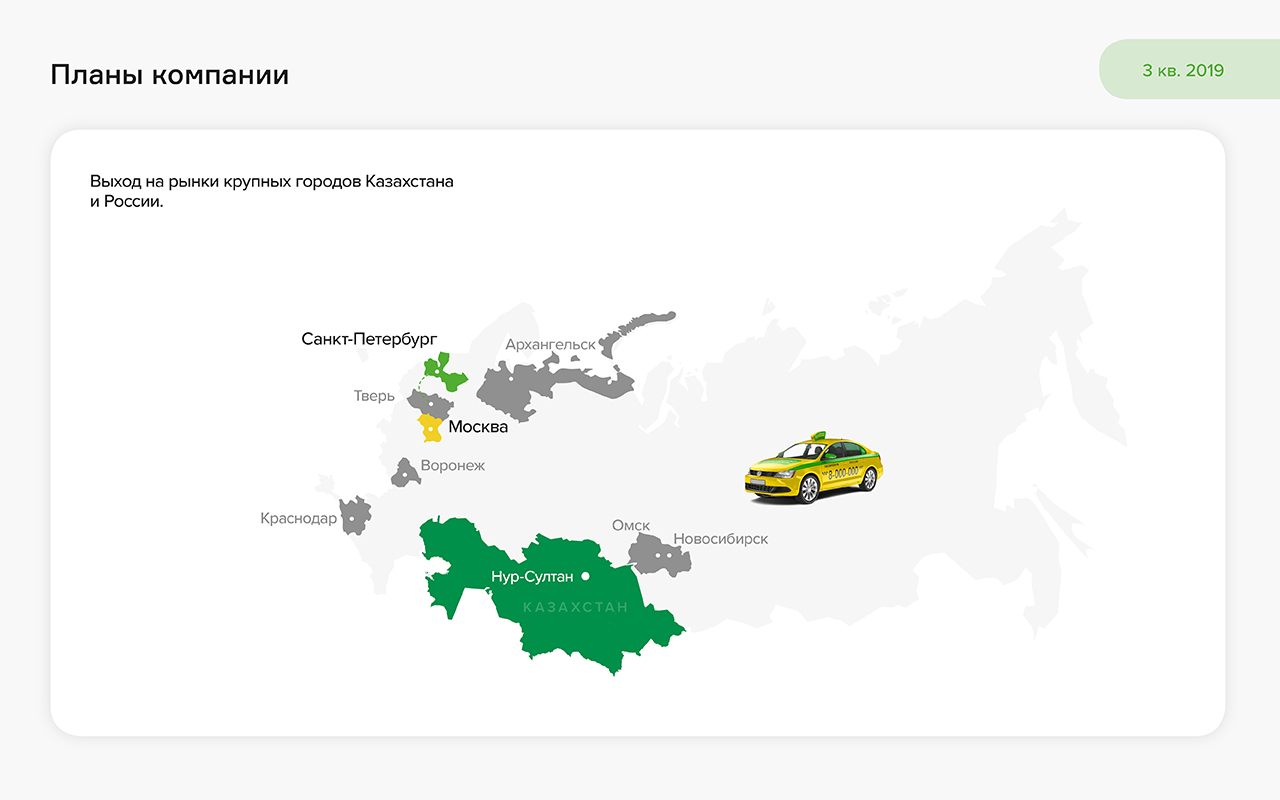 - Наибольшие темпы роста заказов в процентном отношении показывают новые регионы работы сервиса — Москва и Нур-Султан. Однако основную выручку по-прежнему генерирует Санкт-Петербург, поскольку к базе сервиса в Северной столице подключено более половины всех партнерских автомобилей — почти 6,5 тысяч.